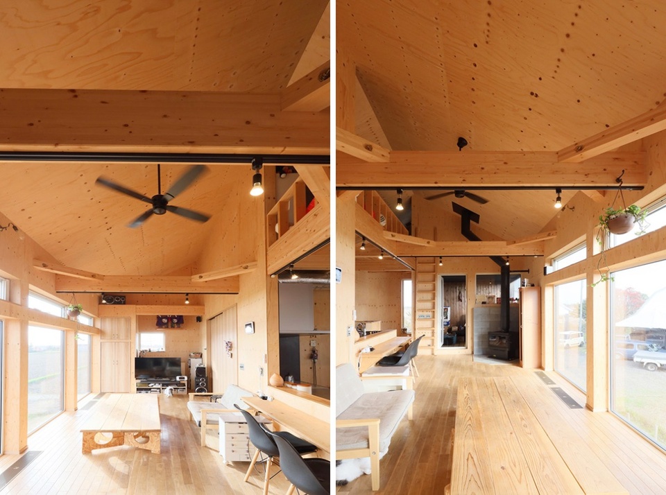ログハウスのような温かみのある住宅を望んでいたMさんファミリー。辻野建設工業が手がける当別町金沢地区の田園住宅を見て「こんな家を建てたい」と決意し、理想のマイホーム建設へと動き出しました。