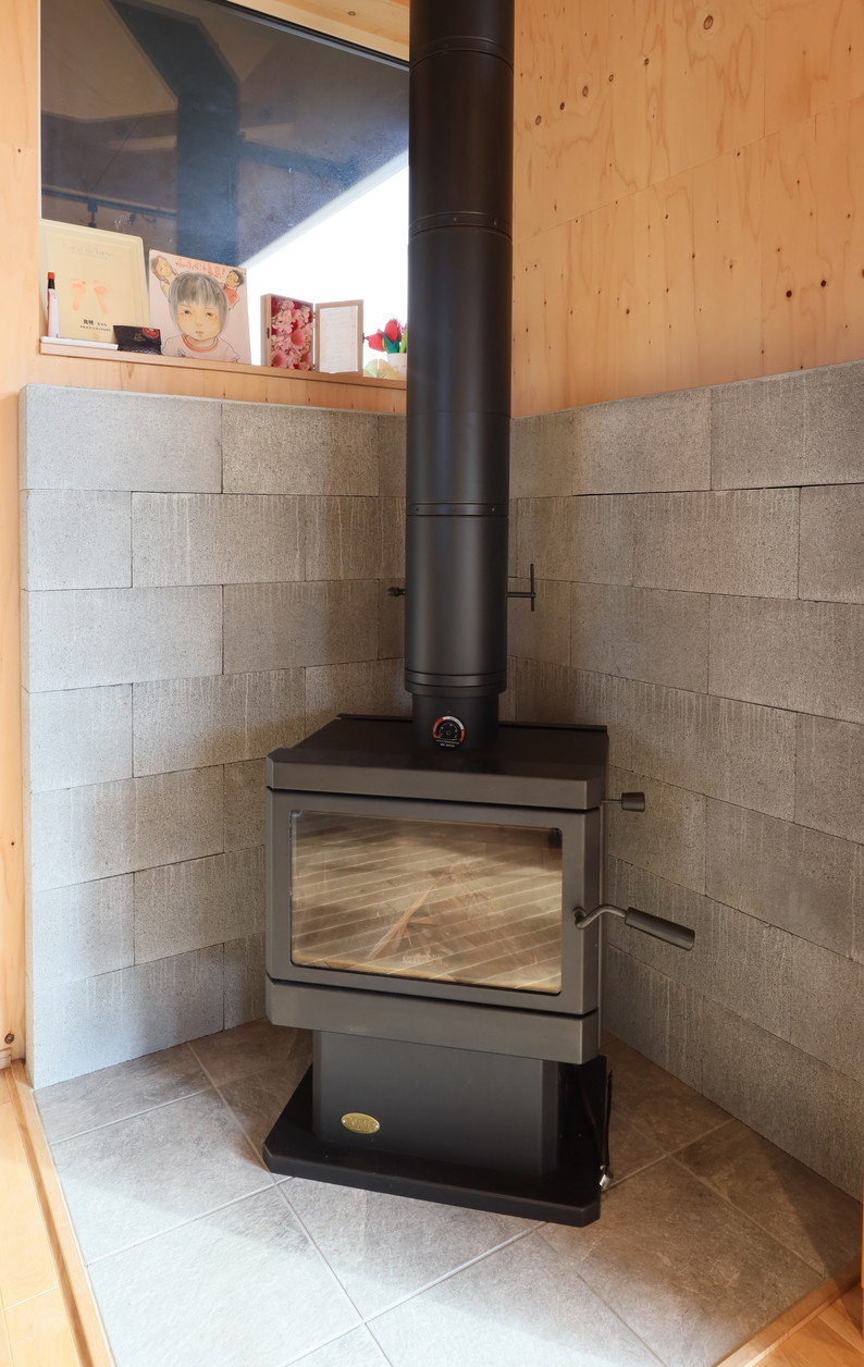 Mさんファミリーが辻野建設工業との打ち合わせで特にこだわったのが、薪ストーブです。以前に住んでいた家が寒かったことから、家の温かさに関しては強いこだわりがありました。断熱・気密に優れた辻野建設工業の建物に薪ストーブを導入することで、実際の暖かさはもちろん、室内の雰囲気も気に入っているそうです。
