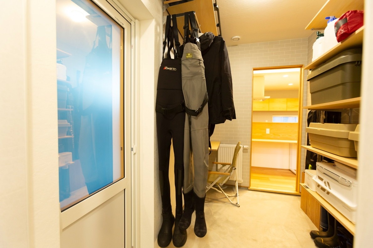 ご夫婦の共通の趣味はアウトドア。Kさんは特に釣りが好きで、釣り道具やキャンプ道具を収納するための専用室を希望しました。通称「釣り部屋」と呼んでいます。