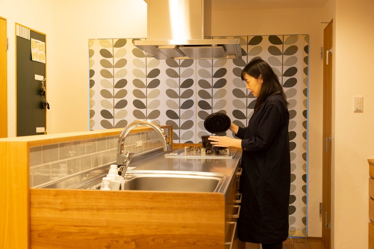 奥さま 子どもたちが成長し、庭で遊ぶようになった時にも、キッチンから様子を見守ることができるようにお願いしました。ダイニングへの配膳にも便利ですし、物を取りに行くにも動きやすいので使い勝手がとても良いです。