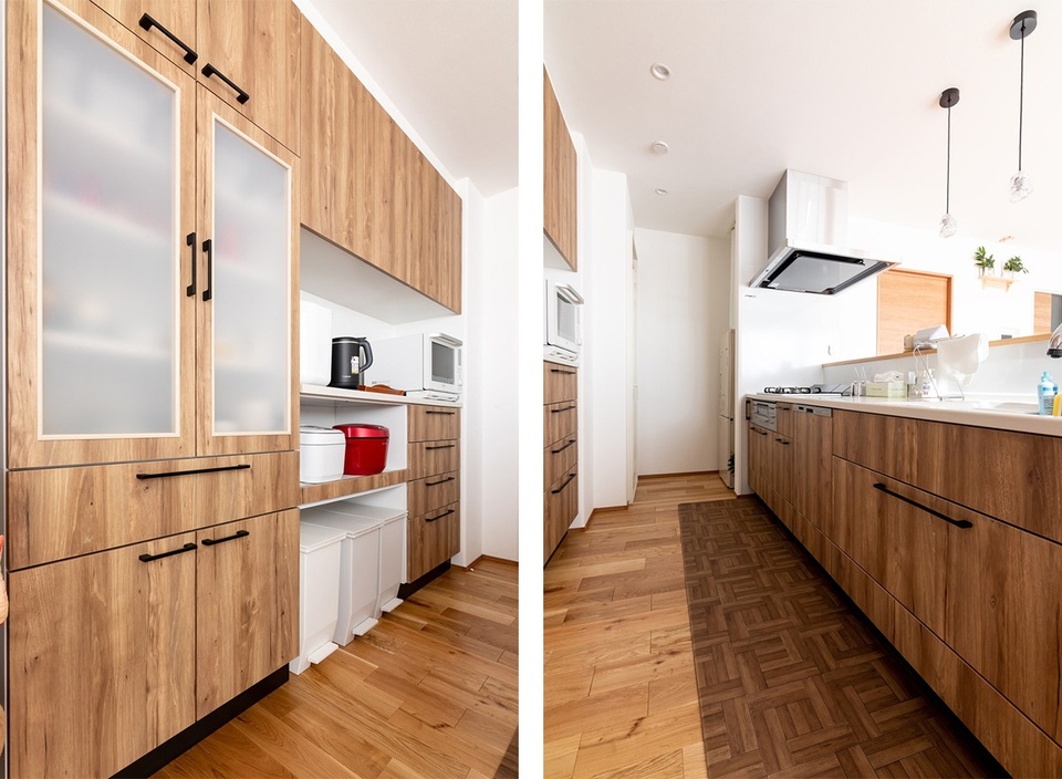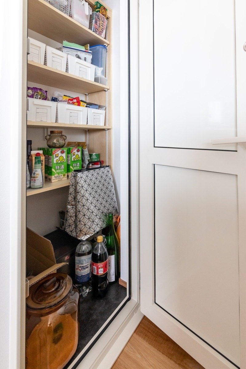 奥には、永山モデルハウスにも採用されていた食品庫を設置。断熱気密に優れた住宅なので、冷たい外気が入る保冷タイプになっています。