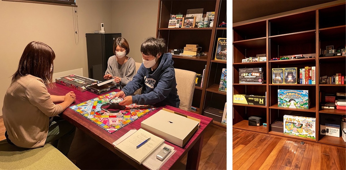 Tさん 「友人たちが集まってはここでカラオケやTVゲームをしたり、夫婦で楽器演奏などを楽しんでいます。音響にもこだわったので、ライブ映像などを観て盛り上がることも多いです」。