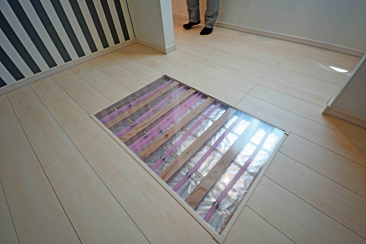 全室低温水床暖房は、足元が暖かいだけでなく、パネルヒーターのような暖房機を室内に置かなくて良いので、邪魔にならないし、掃除の手間も省けます。電気・灯油・ガスなどさまざまな熱源を使って低温水床暖房が実現できますし光熱費削減にもなります。