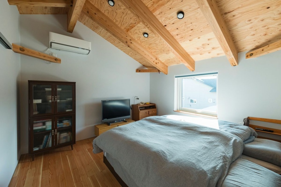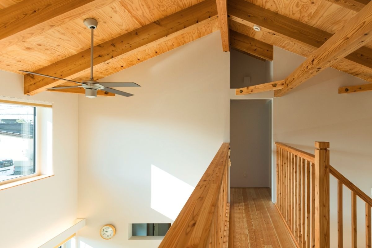 2階の天井にはクロスを貼らず、木の質感と木目をそのまま活かしています。