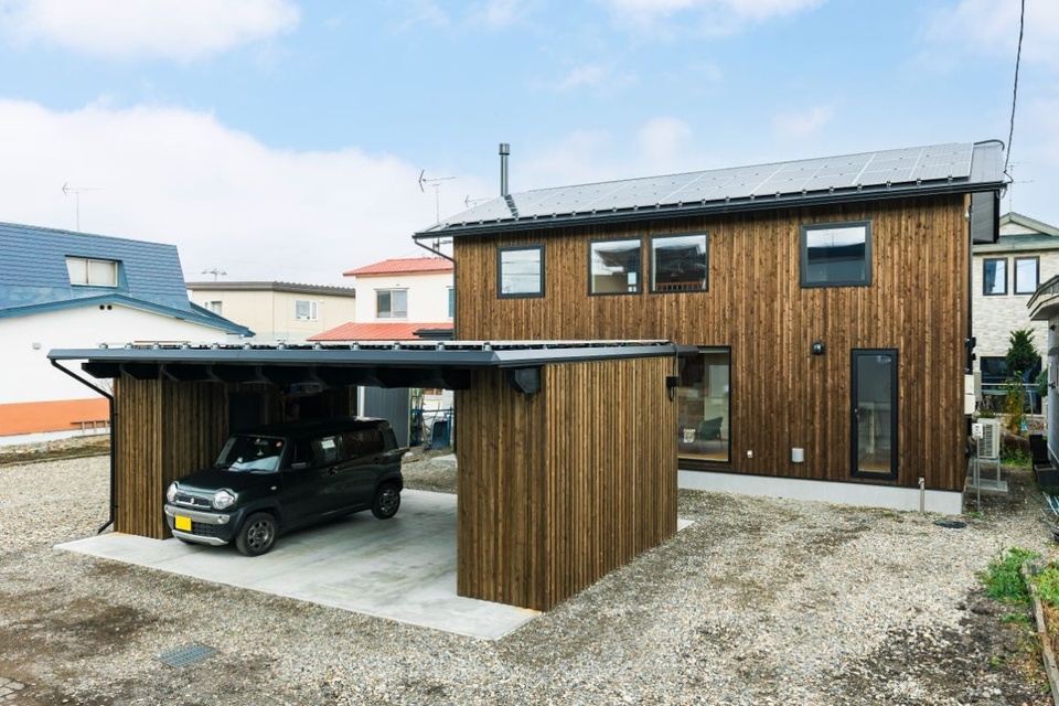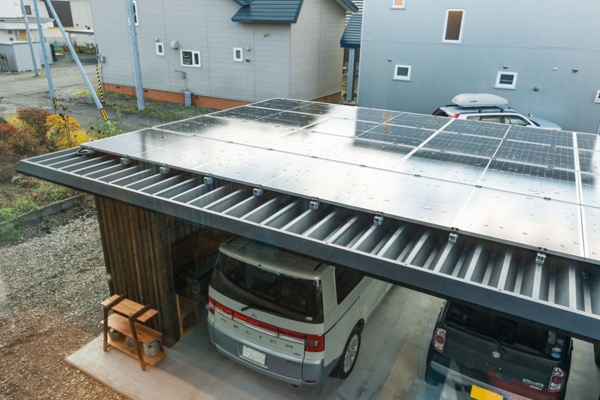 「相性の良いオール電化と太陽光発電を組み合わせたくて」と、住宅、カーポート双方の屋根に太陽光パネルを設置しました。
