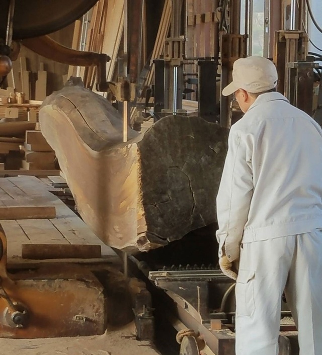 今回の新築にあたり、その専門家の方の好意でケヤキや桂(カツラ)といった銘木を格安で譲ってもらえることに。丸太の状態から製材所で挽き割り、製材したものを、村上工務店の大工が加工しました。
