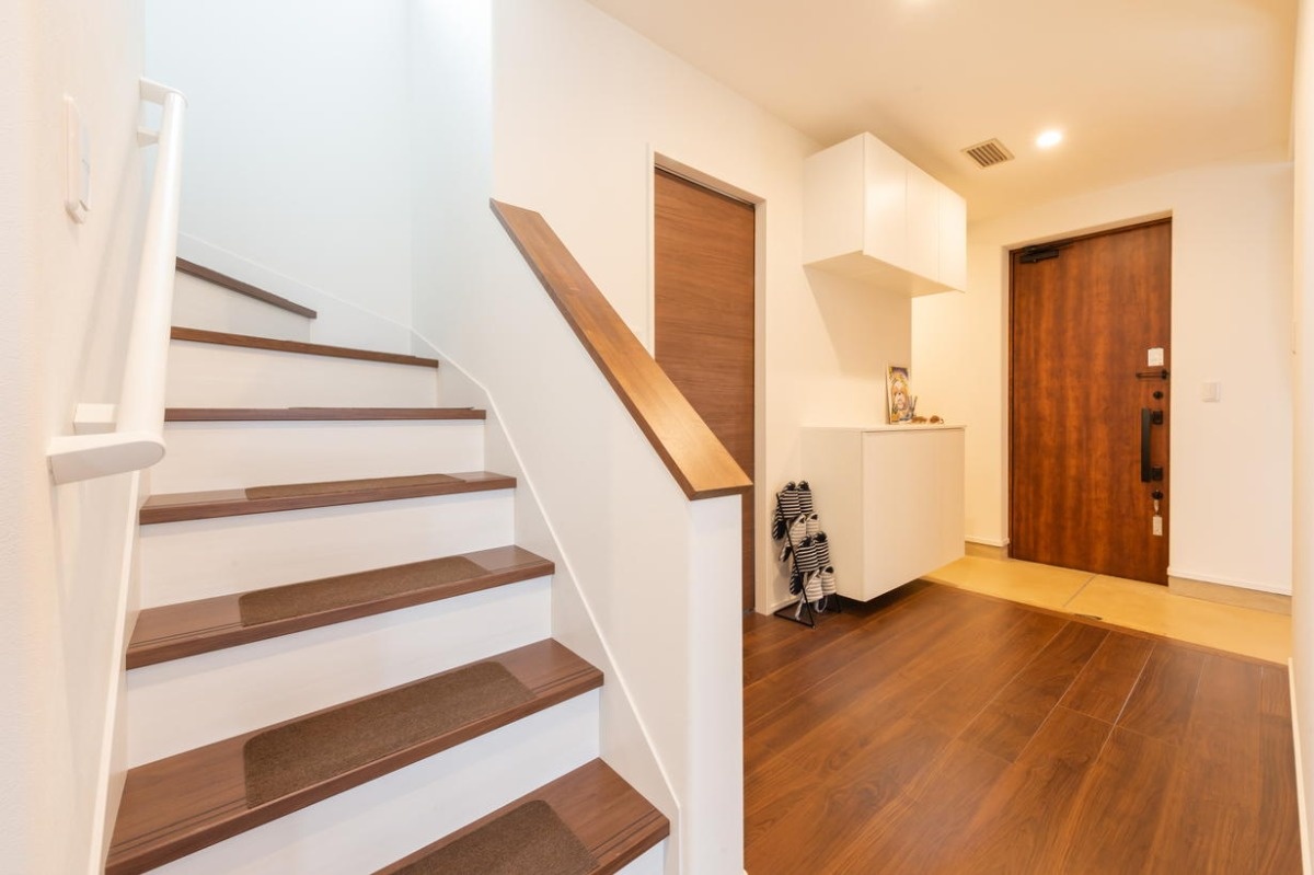 2階の寝室へと続く階段を上りながら、就寝時も室内環境の良さを実感するそう。夏は寝苦しさがなく、冬も寒さ知らず。「朝まで起きることがありません」とKさん。