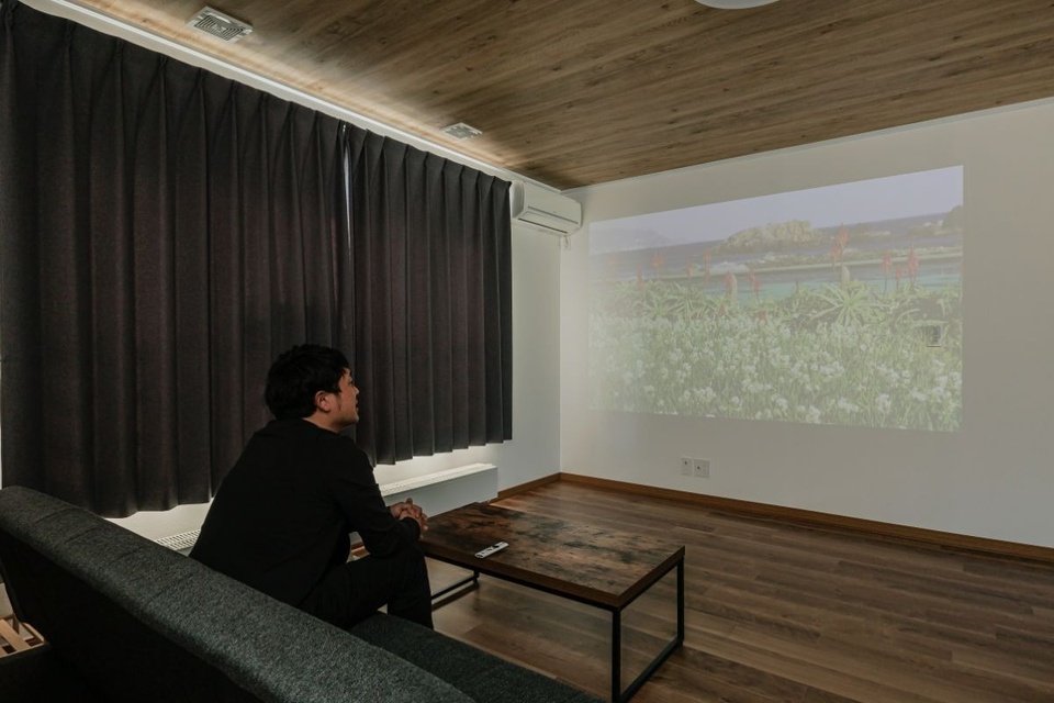 2階の元LDKはプロジェクター付きの照明を入れ、セカンドリビングともいえるシアタールームと漫画部屋に。将来的に二世帯に戻す可能性も考え、キッチンは撤去の際に配管を残したそうです。