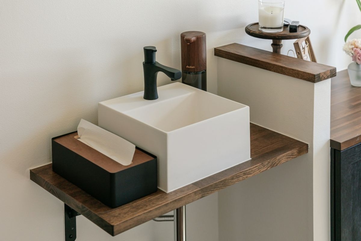 リフォーム前はコンパクトだった洗面台は……