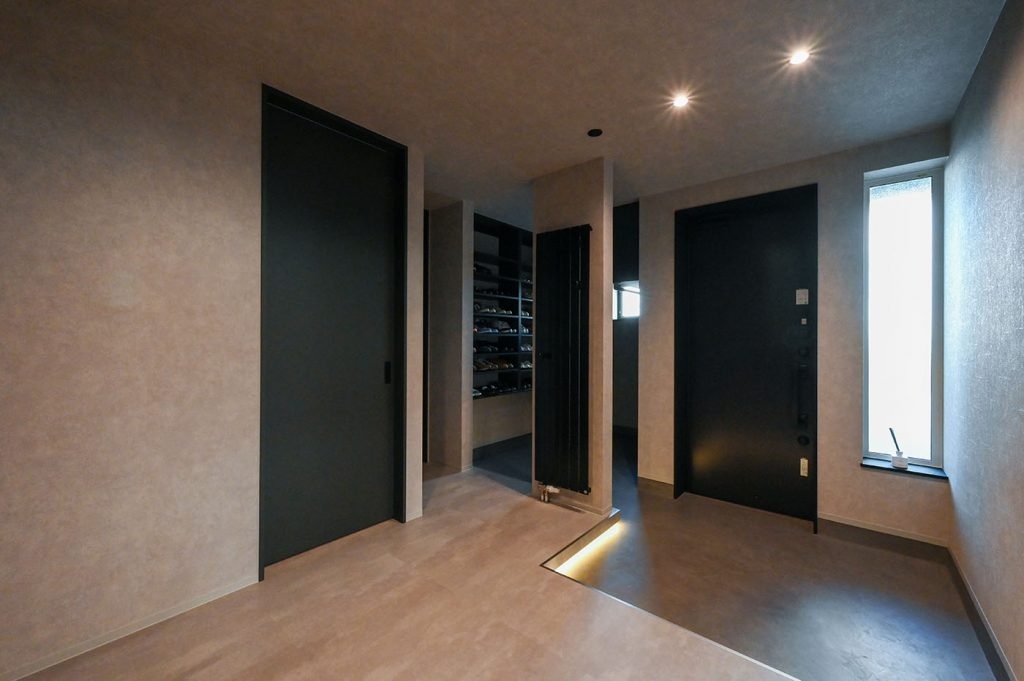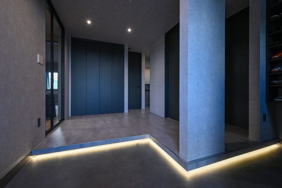 玄関の上がり框(かまち)の部分に間接照明をつけるのは、小山内建設の現場で電気工事を担当している担当の方にご提案いただいた案です。