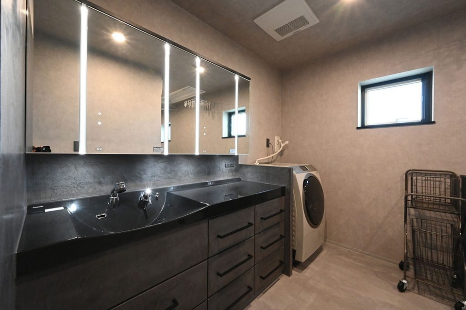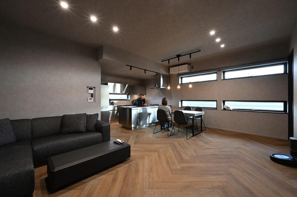 天井高を2.8メートルにしてもらって開放感を出しました。壁や天井もグレーを基調に何度も検討しました。