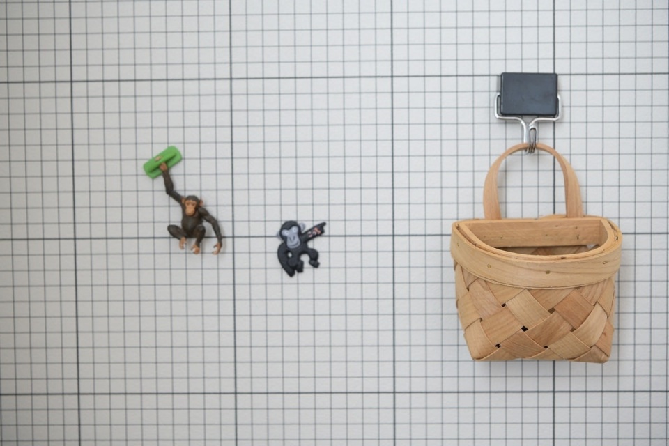 カウンターの壁面には個性的な方眼紙模様のクロスが。こちらはクロスの下地に鉄粉を表面に塗った特殊な石こうボードを使っているため、磁石でメモやプリントが貼れるという優れもの。