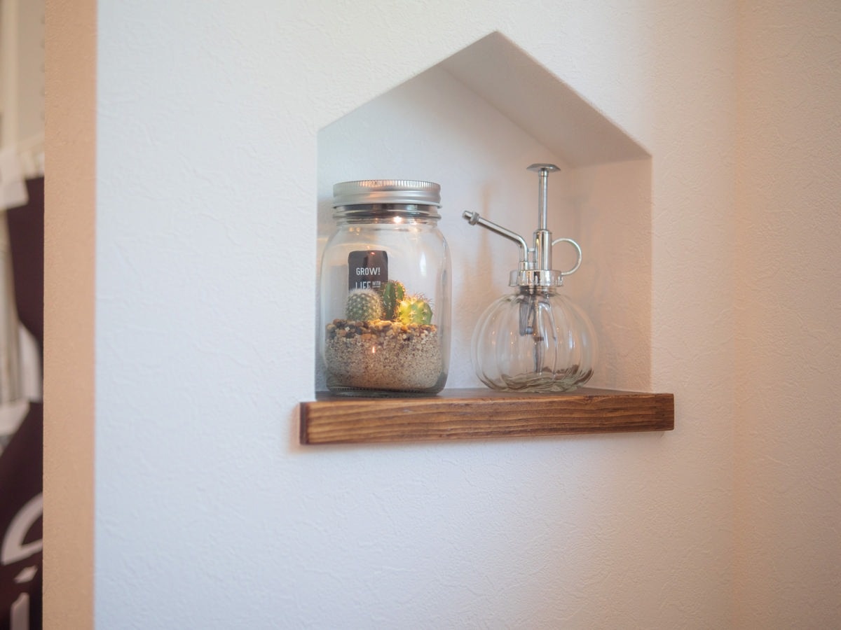 玄関を入ってすぐに迎えてくれるのがこちらのニッチ。お家型のデザインに胸がキュンとしてしまいます。