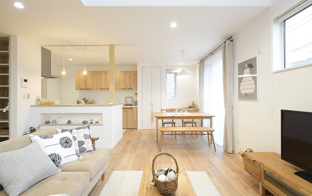 「当社のお客様は、主に小さなお子さんがいらっしゃる4人家族が比較的多いんです。子育て世代が安心して暮らせる家にしたいから、設計上外せないポイントがあります。」と石井さん。そうしたポイントを確認しながら、見どころを順にご紹介していきましょう。