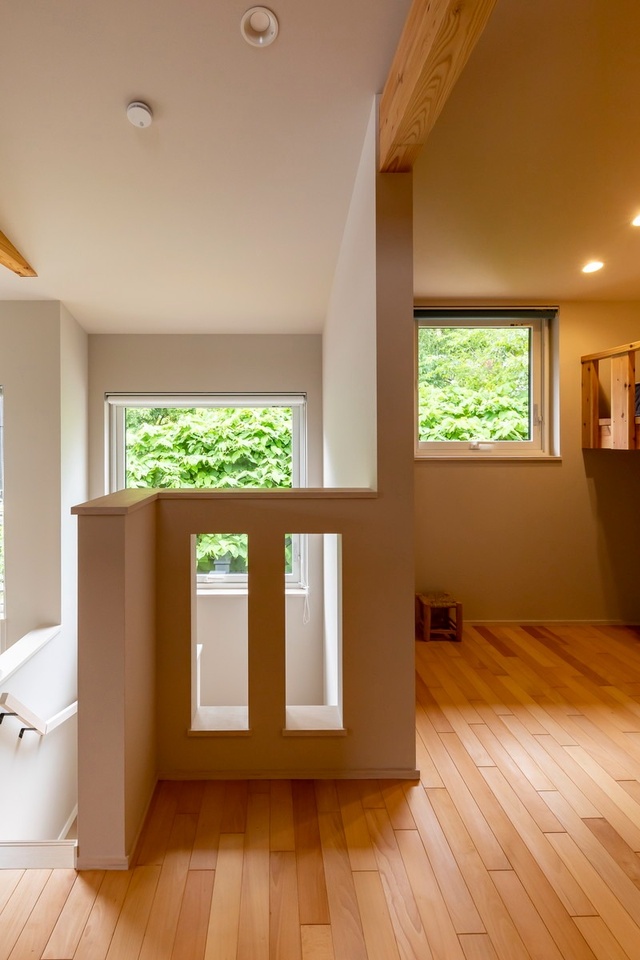 ゆるやかに廊下とつながるロフトベット付きの個室や空窓階段など、「Natura Vita」のプランには、毎日の生活が楽しくなるような仕掛けが盛り込まれていました。