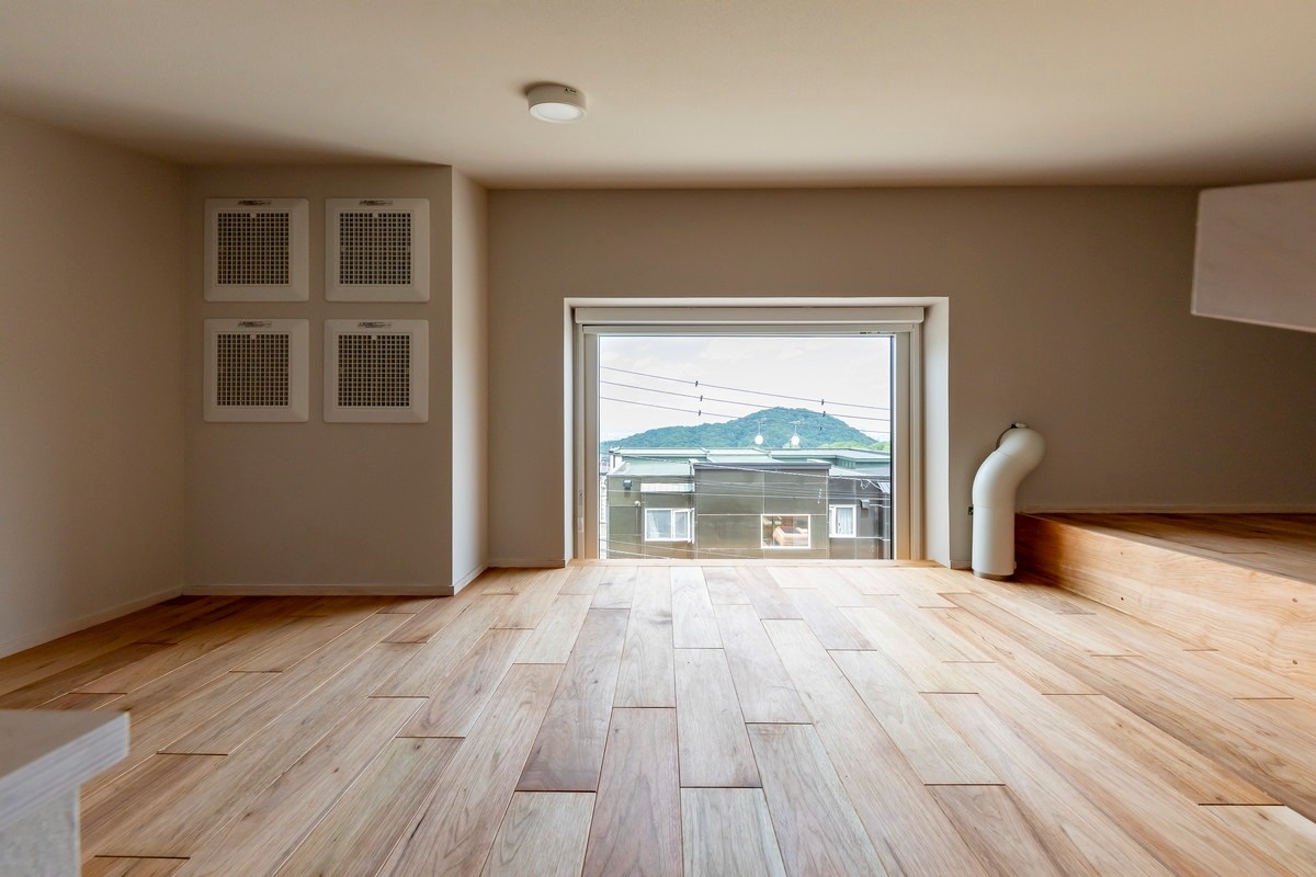ロフトに付いたDCモーターファンによって、空気の流れがつくられています。