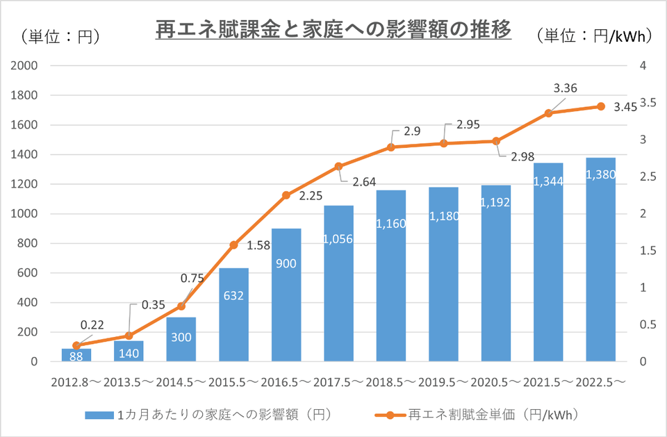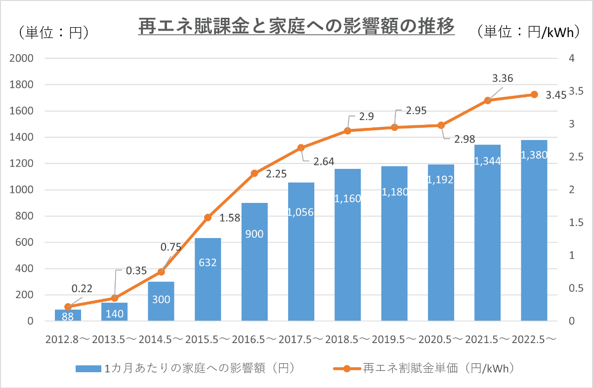 再エネ賦課金だけをみても、こんなに上がっています。