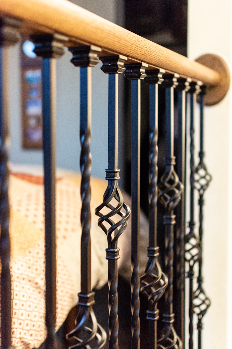 お客様を最初に迎えるエントランスホールは、輸入住宅の重要なポイントの一つです。天井の高さに加え、T邸では上下階があるスキップフロア構造で立体感もあります。