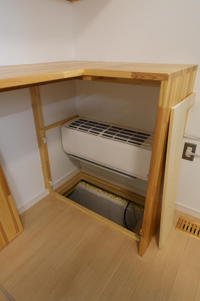 小屋裏には夏の冷房用に、もう1台エアコンを設置しています。