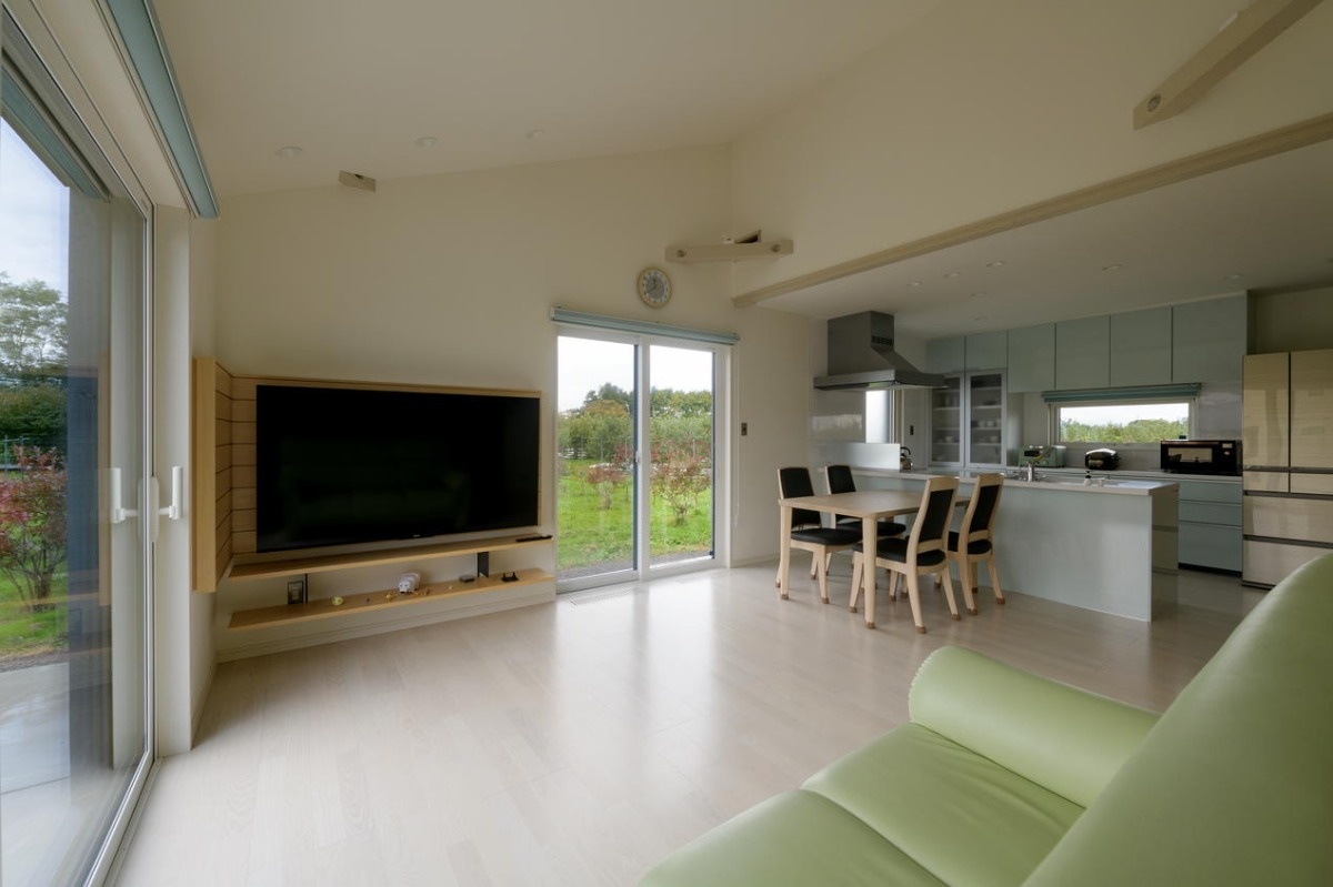 厳しい寒さの青森ですが、Sさんはこの家で過ごす冬も「快適です。遊びに来た友達は暑いと言います」と笑います。窓が大きいこともあり、陽射しが入ると特にリビングは暖かくなるそう。「息子は冬でも半袖短パンで過ごしていますよ。一年を通して一定の室温が保たれていて、冬はもちろん、最近は暑さと湿度が厳しい夏も寝苦しさなどまったくありません」。