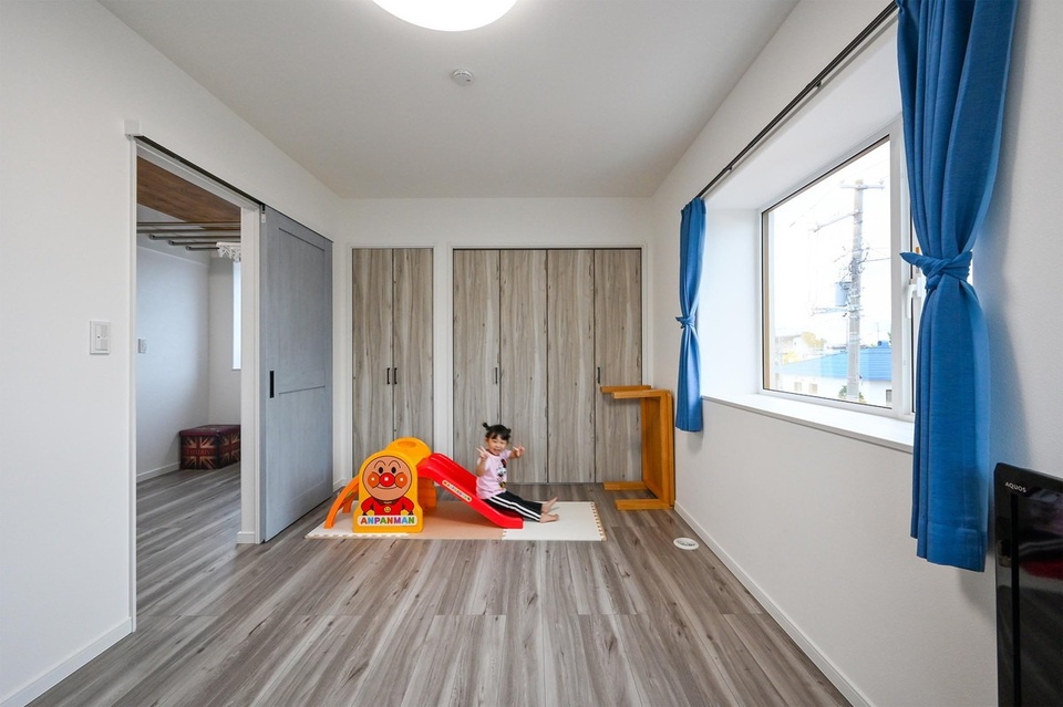 網走市内に2022年6月に竣工したこの家は、光輝建設で大工の棟梁として働くSさんがご家族の想いを“住まいのプロ”としてカタチにした自邸です。ご夫婦と幼い娘さん、奥さまのお母さまの4人で住む2世帯住宅となっています。