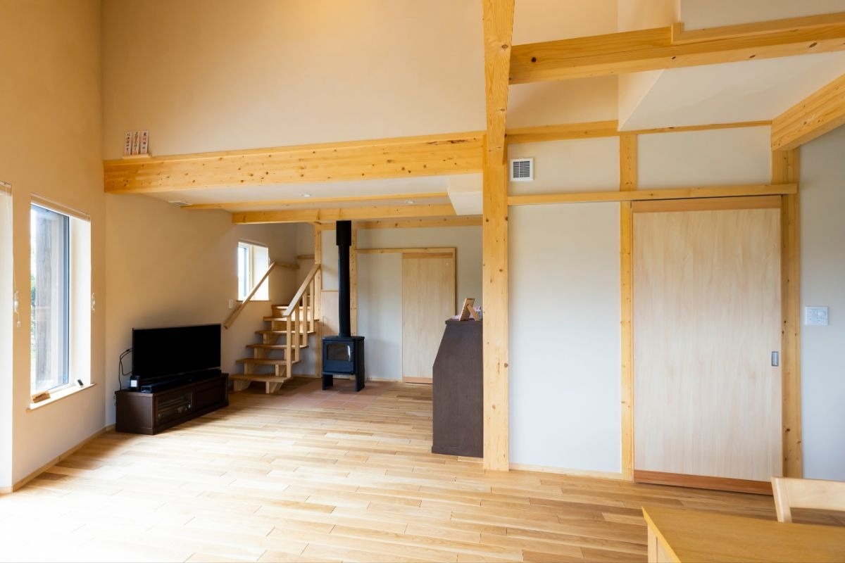 友人宅同様、新居のリビングの一角には薪ストーブを設置することにしました。引渡しは3月下旬でしたが、薪ストーブを朝に一度焚いてしまえば、断熱の効果もあって家全体が十分暖かくなり、満足したそうです。「我が家に住んで一番感動したのは、住み始めた3月で屋外が5℃程度でも室内は暖房なしでも暖かいということでした」