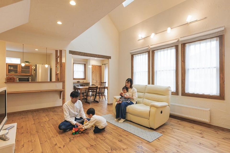 Oさん 住み心地は最高です! 家中同じ温度で、窓際も全く冷えたりしないんです。サッシが木製なので熱が伝わりづらいし、目で見ても暖かな雰囲気でとても気に入っています。何よりも、あちこちに愛着がある気に入ったデザインの中で暮らせることが嬉しいですね。この家で、家族の時間を大切に過ごしていきたいと思っています。