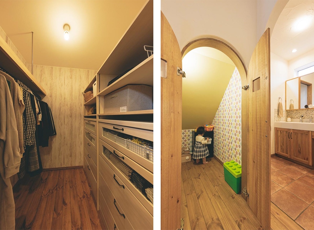 (写真左)ファミリークローゼットは着替えの動線を考え浴室近くに配置。