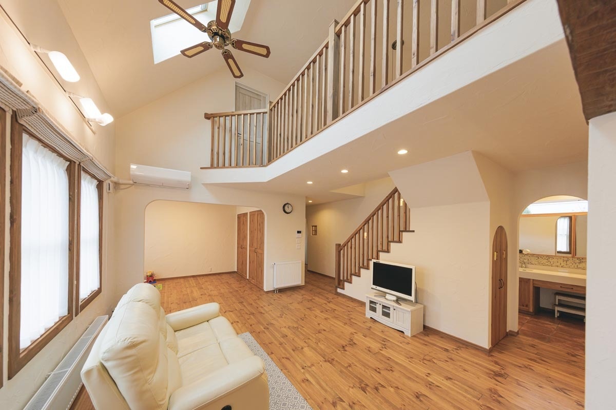 LDKは吹き抜けの天井に天窓を設置しました。