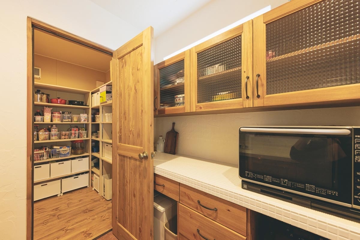 パントリーは外気取り込み式で、冬期は保冷庫として使えるタイプ。いただきものの野菜も新鮮なまま長期保存できます。