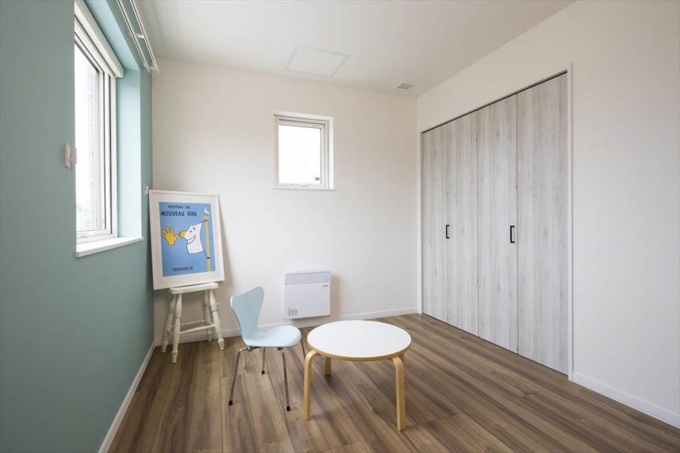 2階子ども室。居室の配置や大きさも希望に合わせて設計が可能。家族の人数や収納の大小によって、暮らしやすい空間が叶います。