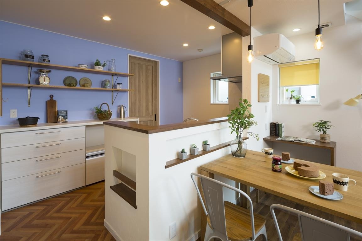 ママの嬉しいを追及した動線の良さや、おしゃれな洗面化粧台、素朴なインテリアが似合う塗り壁や無垢材の心地良さは、"おうち時間"を大切にするご家族に人気です。