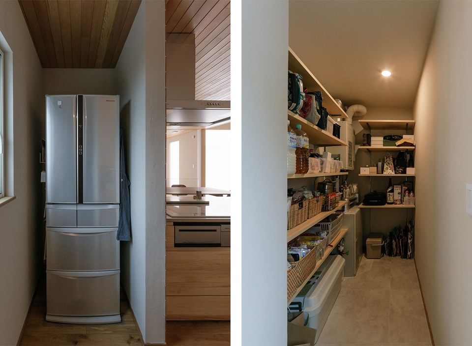 冷蔵庫とパントリーはアクセスしやすく、かつ目に入らない位置に。