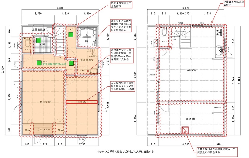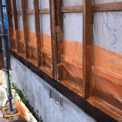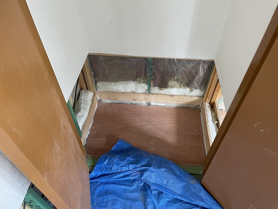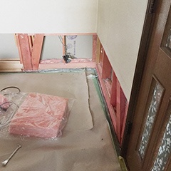 壁断熱については、既に内装が一新されているため、養生をしながら室内側から気流止め工事をしてくれました。