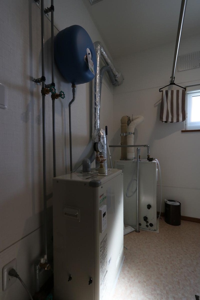 ボイラールームも兼ねた洗面室。給湯・暖房ともに灯油を使っています。