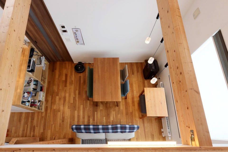 吹き抜けにロフトを組み合わせた明るく開放的なLDK