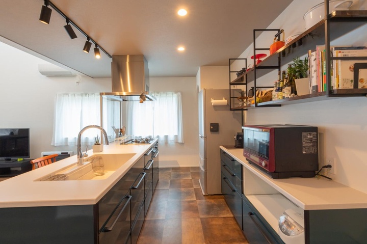 キッチン選びでは、あらゆるメーカーのショールームを回り、性能面などを吟味したというIさん夫婦。「ホーロー製で傷つきにくく、汚れがふき取りやすくお手入れしやすい」(奥さま)という点に魅かれてタカラスタンダート製を選びました。ショールームで一目惚れしたブルーグリーンが部屋の雰囲気にぴったりマッチしています。