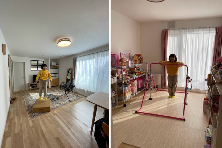 ダンスを習っていて体を動かすのが大好きというSさん姉妹。以前住んでいた賃貸マンションでは、恐る恐るやっていたトランポリンや鉄棒も、思い切りできる環境になりました。