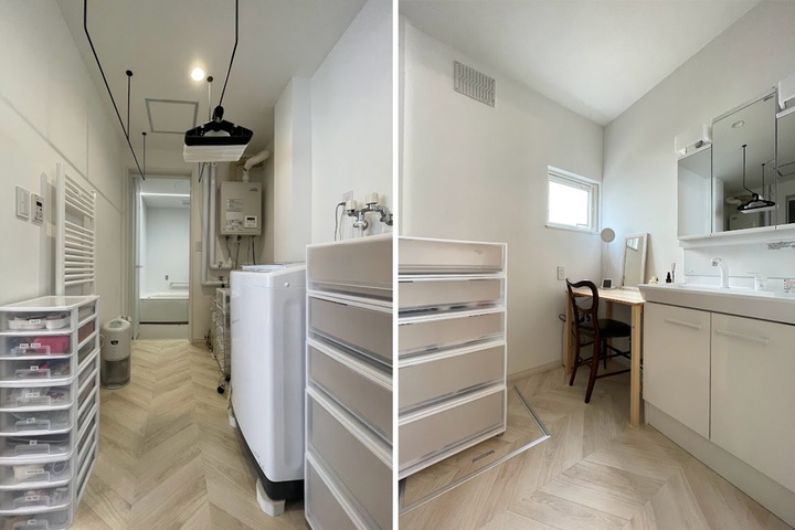 右/並んで身支度がスムーズにできるよう、洗面台の隣りにはドレッサーも備えました。