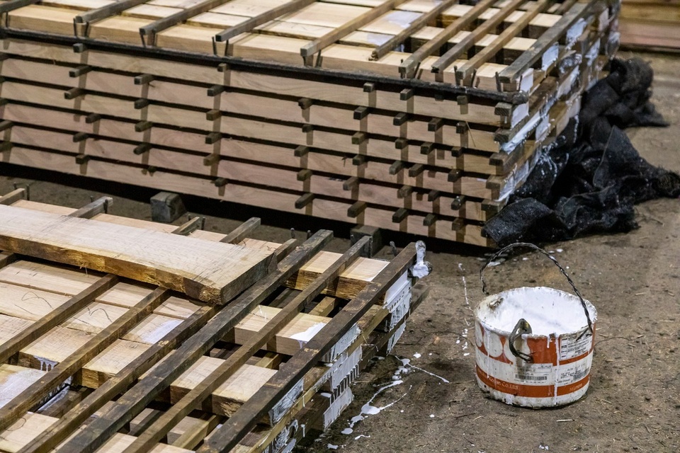 「乾かし続けるより、風雨にさらされた方が落ち着いた木になる」。これもまた、110年の歴史の中で培われた製法です。