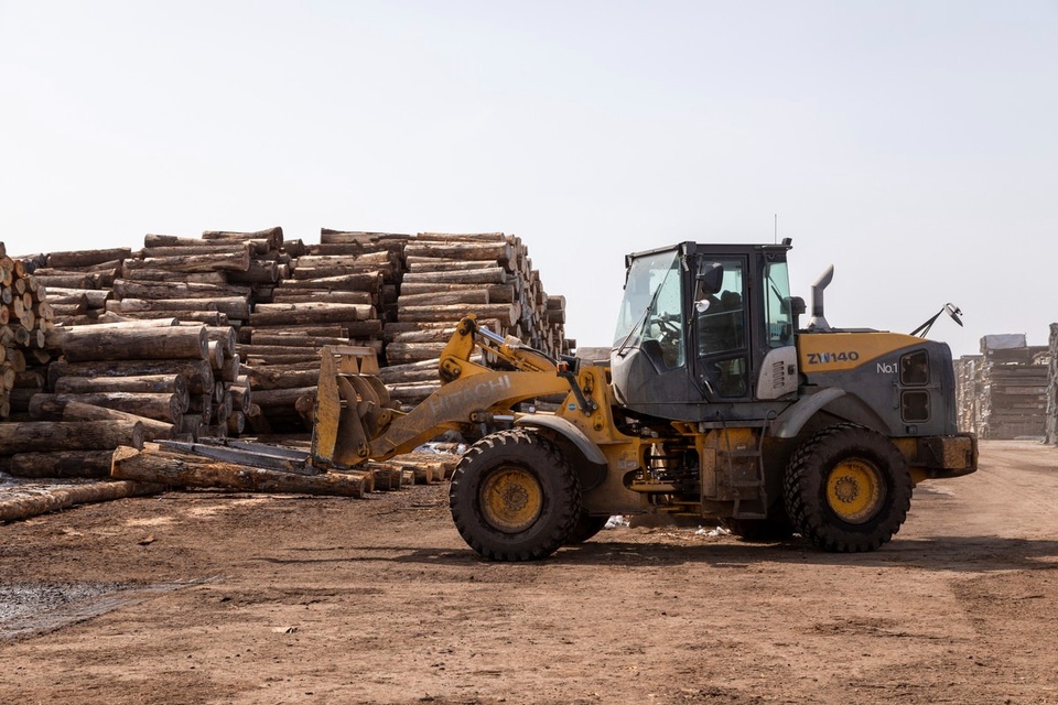 桟積された木材は、乾燥させるために屋外へ搬出されます。