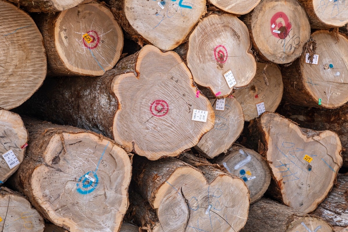 樹齢20、30年のものから150年もの年月をかけて育った大木まで、原木ヤードには個性豊かな木が揃います。