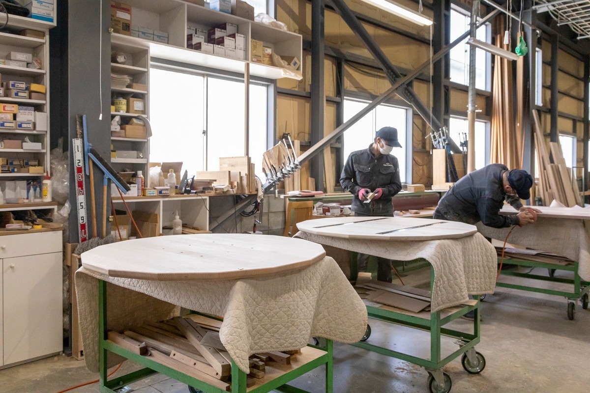 住宅事業部で設計や工事に携わるスタッフさんも「自社製の資材だから、安心して使える」と口を揃えます。昭和木材で家を建てようと考えるお施主さんは、工場見学や、テーブルなどの家具を造作する際の素材選びで工場を訪れることも。また旭川家具のファンの方が、昭和木材に住宅建築を依頼されるケースも多いそうです。