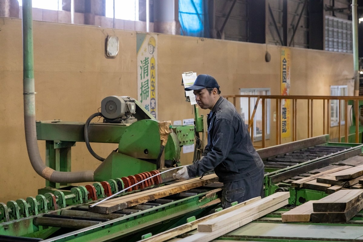 全国的に見ても、丸太から板を切り出し、乾燥保管まで行っている製材会社はごく稀です。工場で働く社員は約90人。人の目利きによって、工程ごとに木材の生かし方が決められ、同時に何人もの職人さんのチェックを経て品質管理がなされていました。そこに「美しさ」や「味わい」という観点が入るからこそ、決してAIに置き換えることができない、製材業という仕事の奥深さを感じる取材になりました。