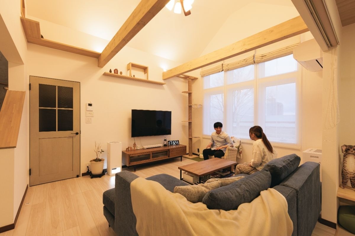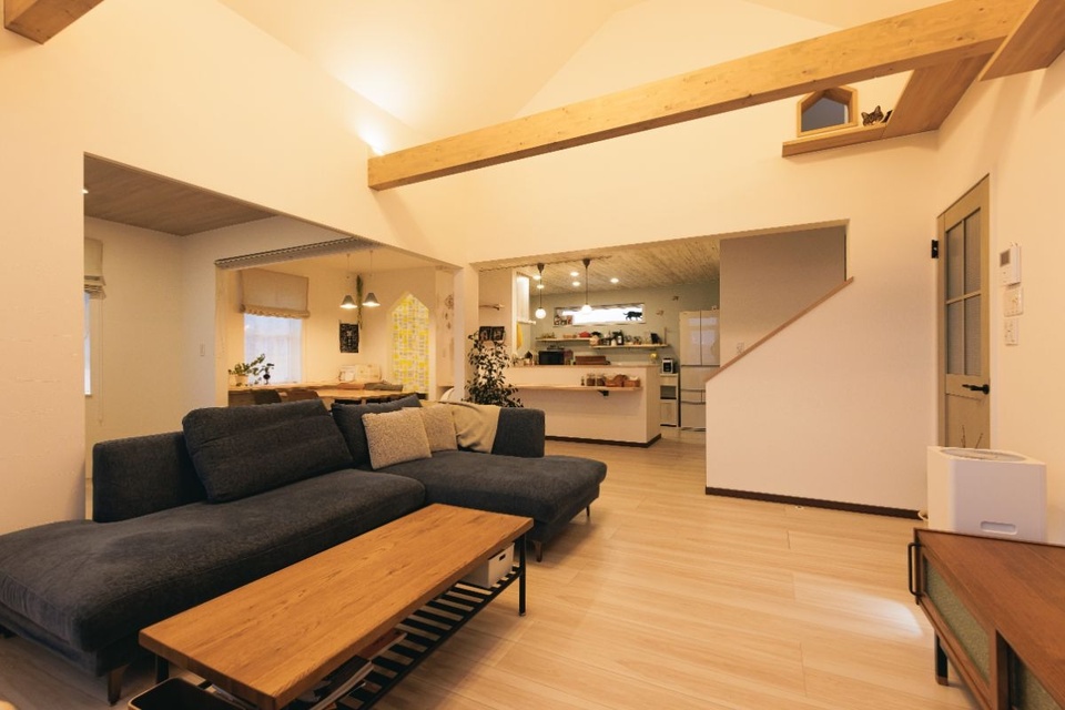 LDKは梁と床に淡い色を選び、明るく広々とした印象に仕上げました。