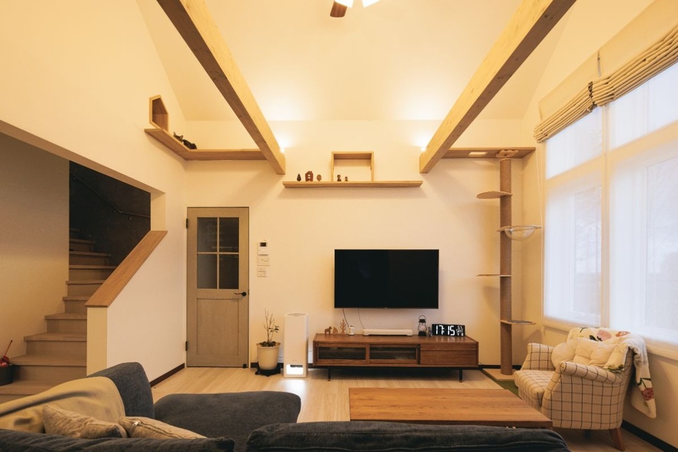 I邸には、奥様が元々飼っていた保護猫とご主人が運命の出会いを果たしたラグドールの2匹の猫がいます。この2匹も含めた家族全員が幸せに暮らせる家を、というのがIさんの願いでした。