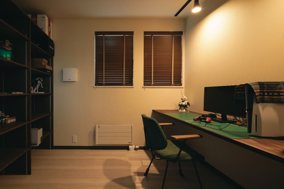 ご主人の書斎を兼ねた趣味部屋は落ち着いた色味に。