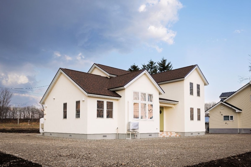 「ジブリ映画に出てくるような、生活のあたたかみを感じさせる家にしたかった」というお二人に朝日良昌社長が提案したのがこちらの外観。プランを見た瞬間にご夫婦ともに「これだ!」と感じたそうです。