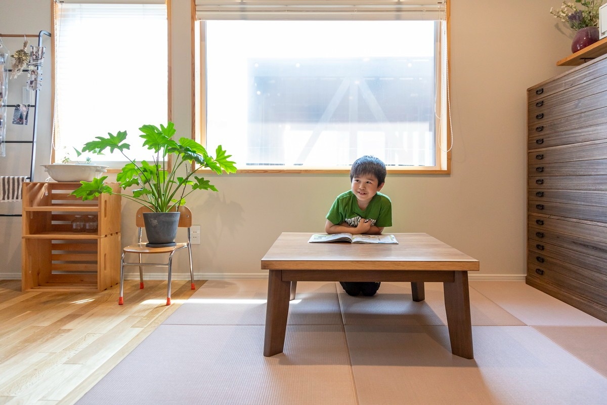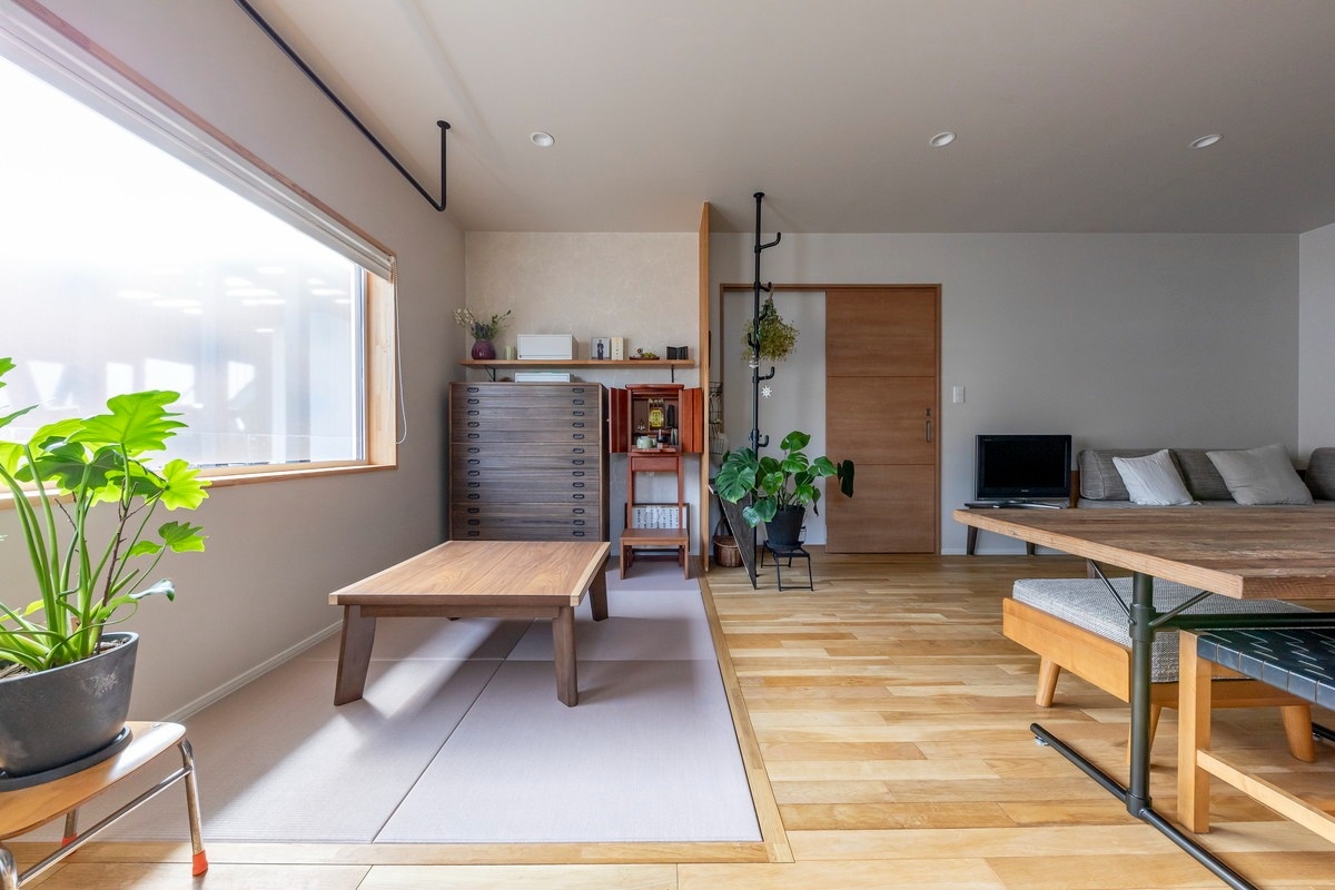 窓際の畳スペースにはお仏壇が備えてあります。その横には着物の和ダンスも。洋風テイストに合わせた和の設えが見事です。