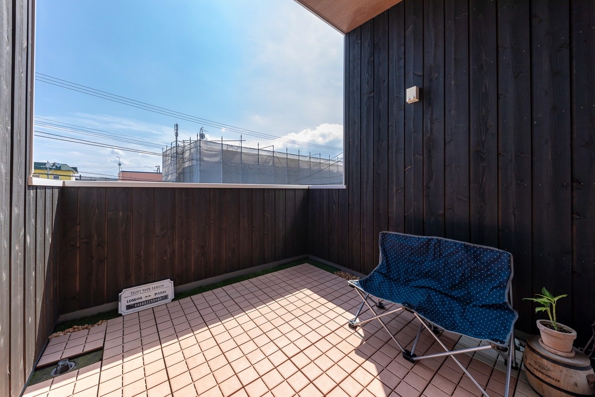 ベランダは腰壁+屋根もかかっていてプライベートな空間として重宝しているそう。
